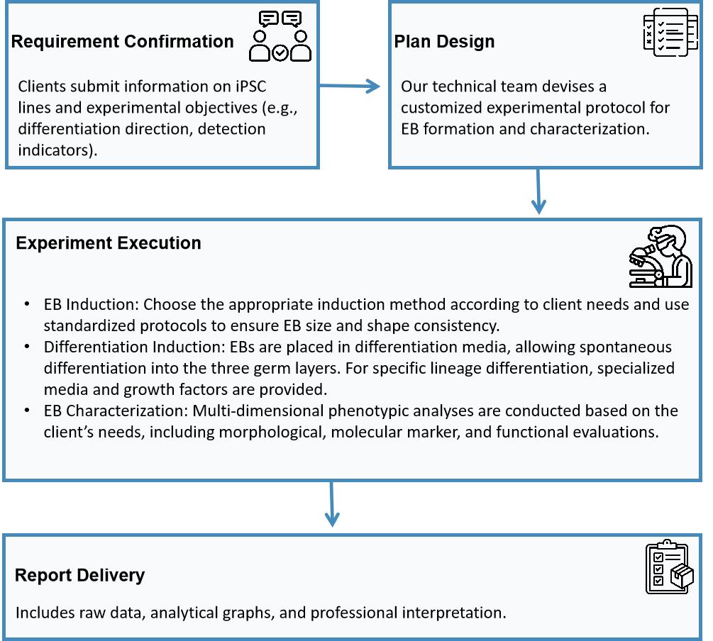 Our stem cell biology team optimizes EB formation conditions for various iPSC backgrounds (e.g., disease-specific, gene-edited cell lines) to ensure over 95% reproducibility.