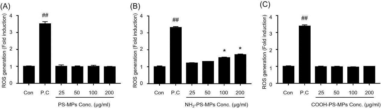Fig. 2. Reactive oxygen species (ROS) generated by various PS-MPs were measured using DCF-DA assay (Jeon, M. S., Kim, J. W., et al., 2023)
