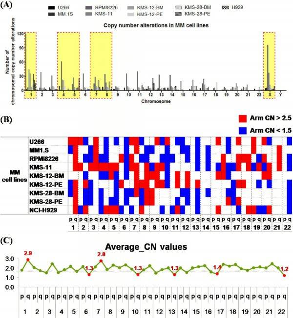 Fig. 3 Analysis of the frequency of copy number alterations in MM cell lines. (Lee KJ, et al., 2017)