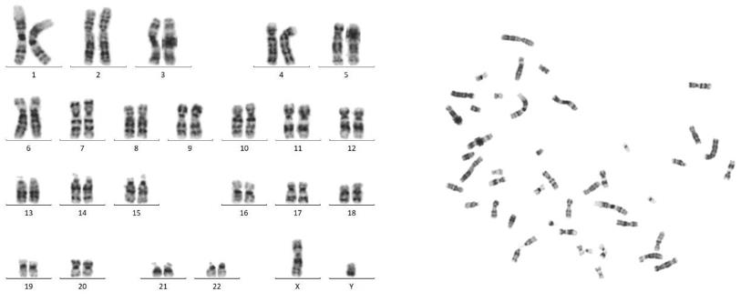 Normal chromosomal profile (46, XY) with no detectable abnormalities.